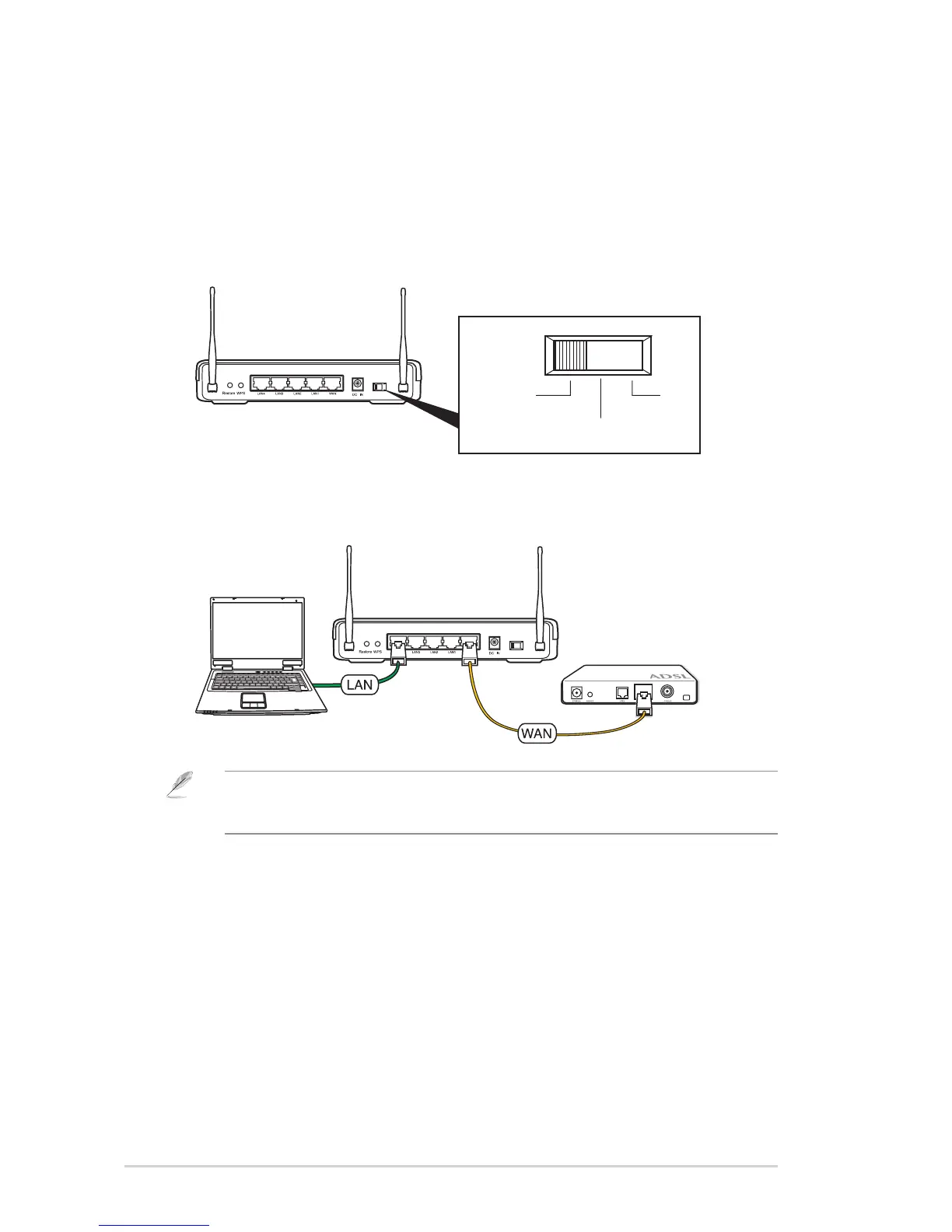 computer to the wireless router for initial conguration to avoid possible setup problems due to
