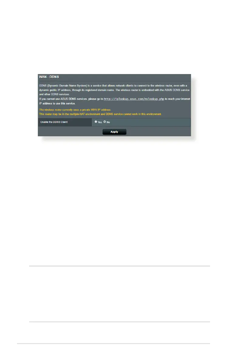 • Enable the DDNS Client: Enable DDNS to access the ASUS