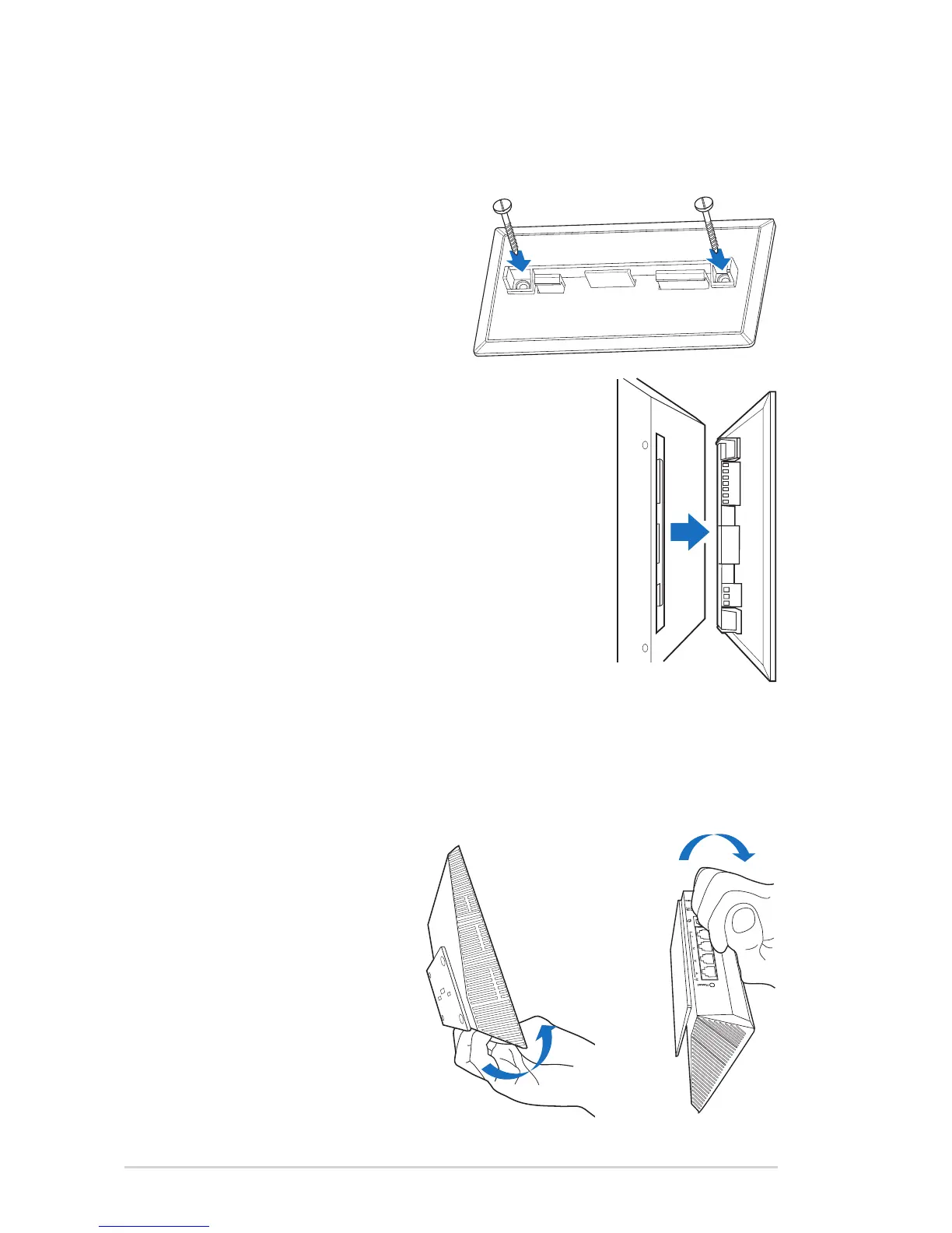 1. Locate the two holes on the stand and secure the stand to the wall with screws.