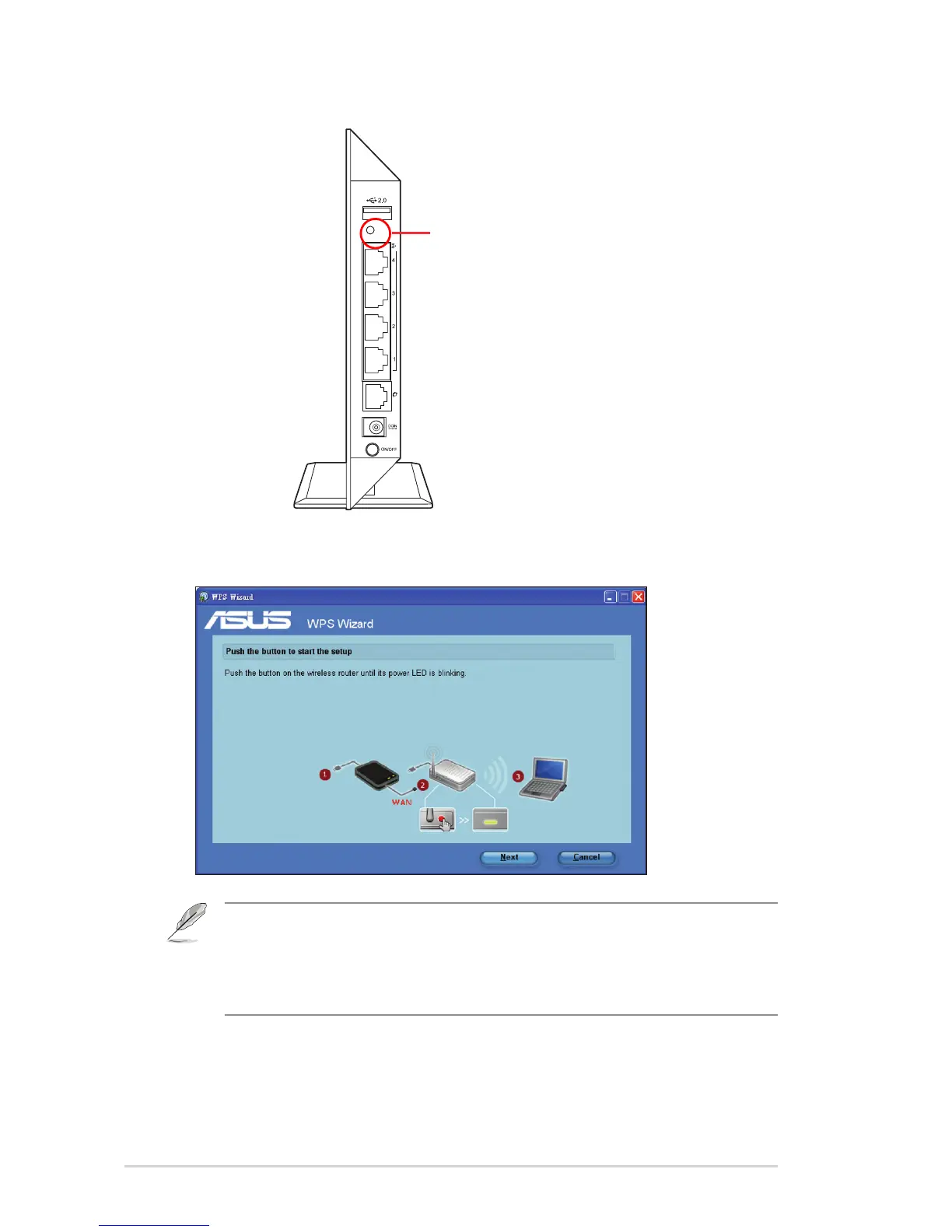 • If the WPS button is pushed without running the WPS Wizard, the PWR indicator ashes and