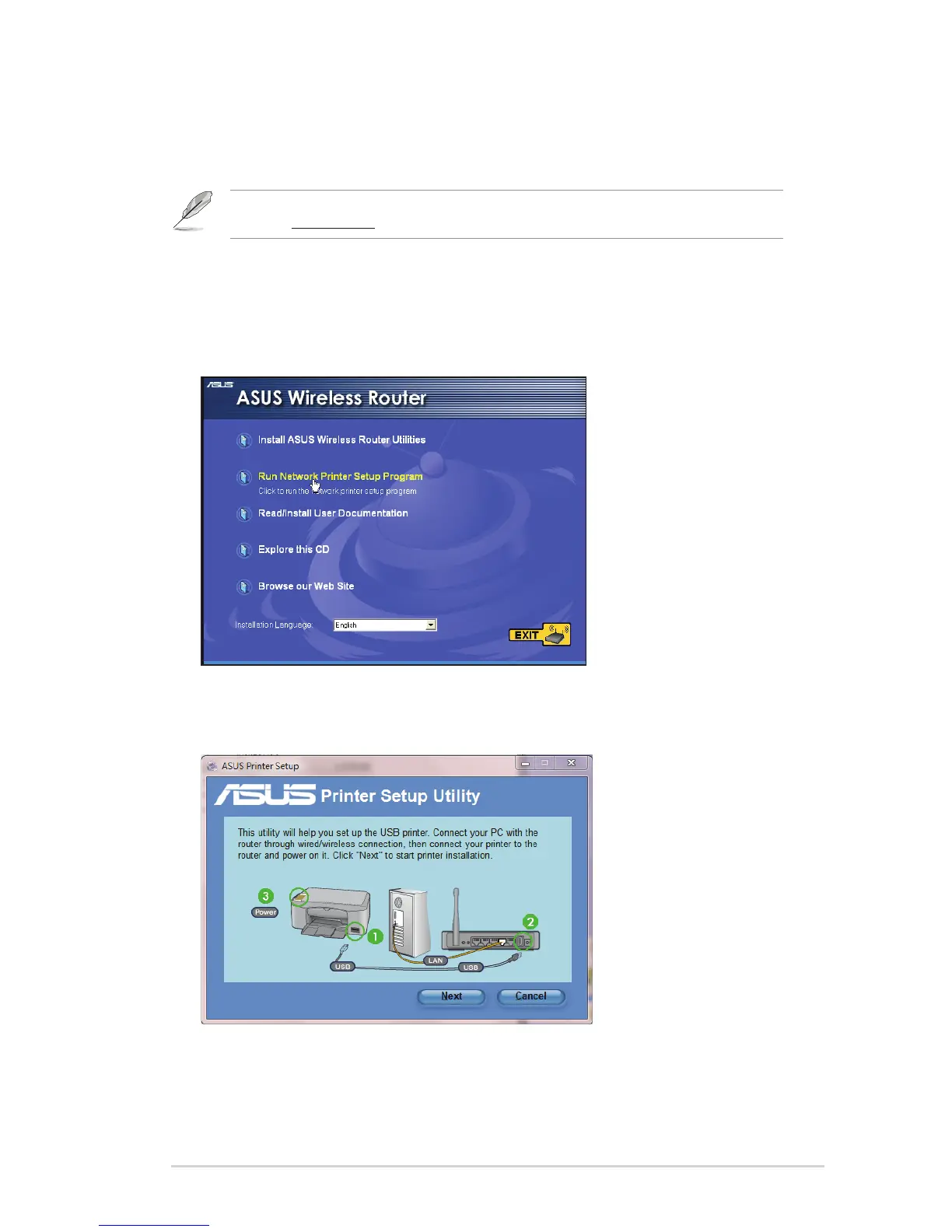 Note: To check if your USB printer is compatible with your ASUS wireless router, visit the ASUS