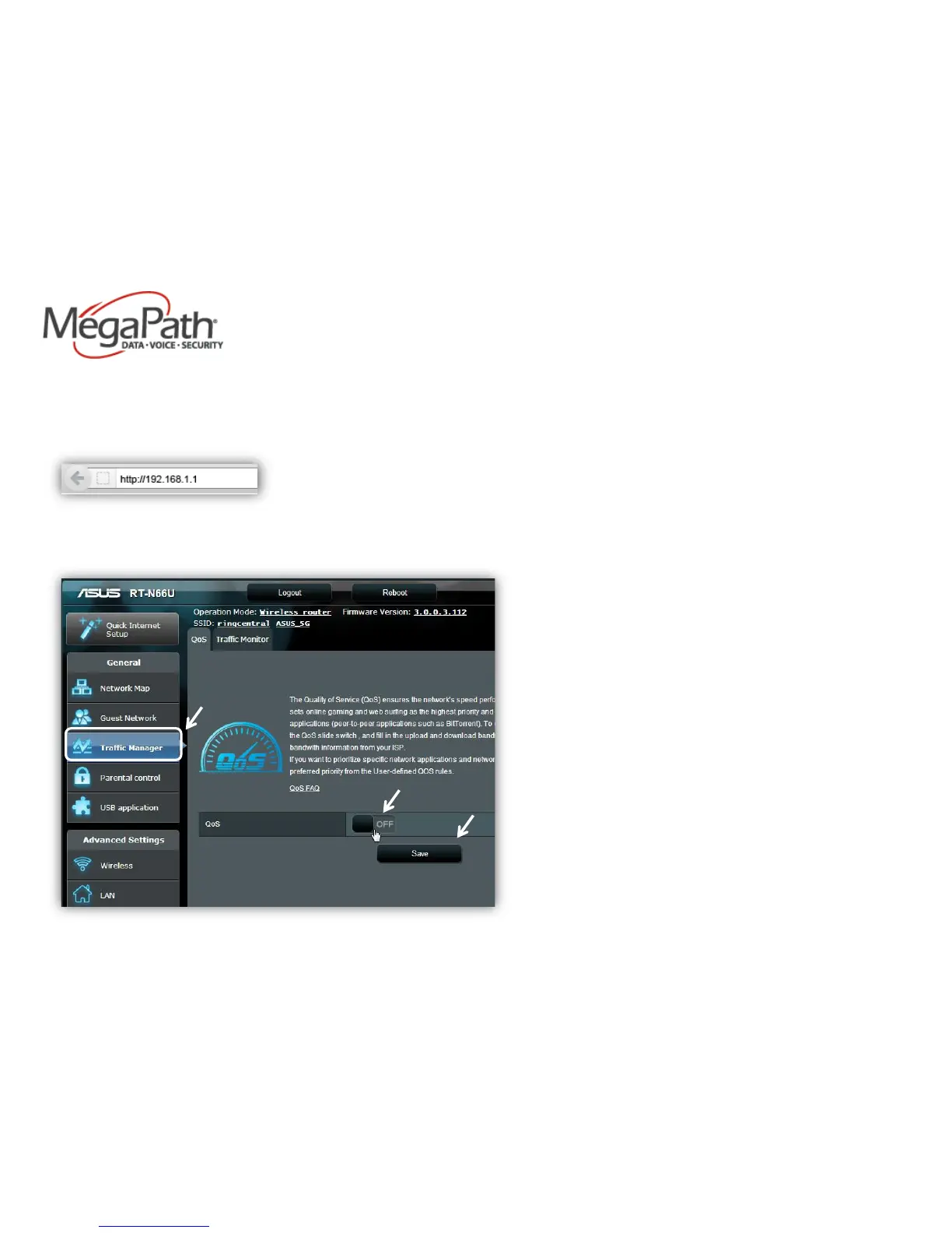 Asus RT- N66U - Configure QoS Settings; Access Router and Traffic Manager; Enable QoS and Save Settings