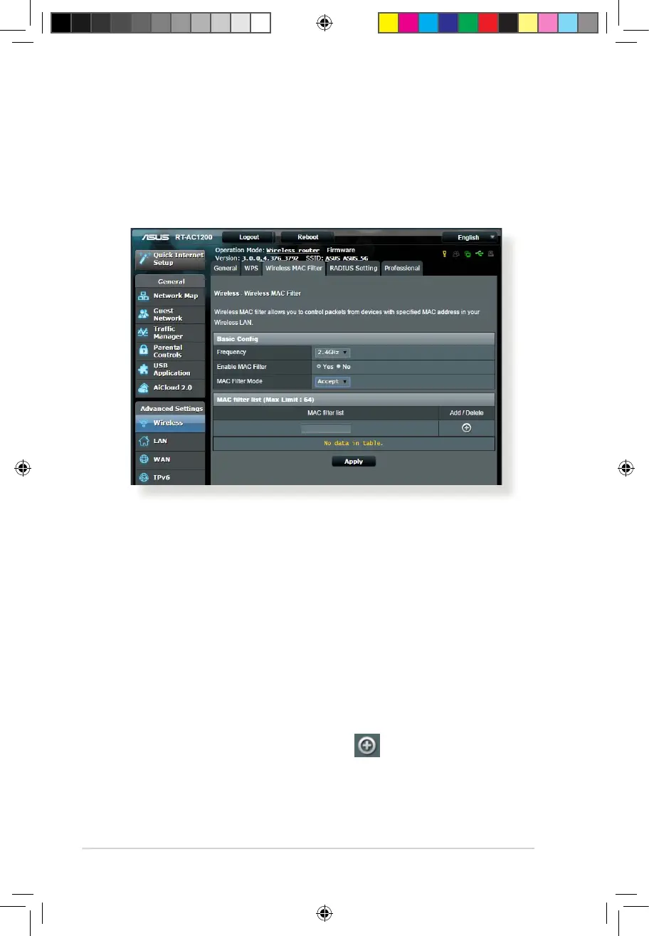 4. On the MAC lter list, click the Add button and key in the