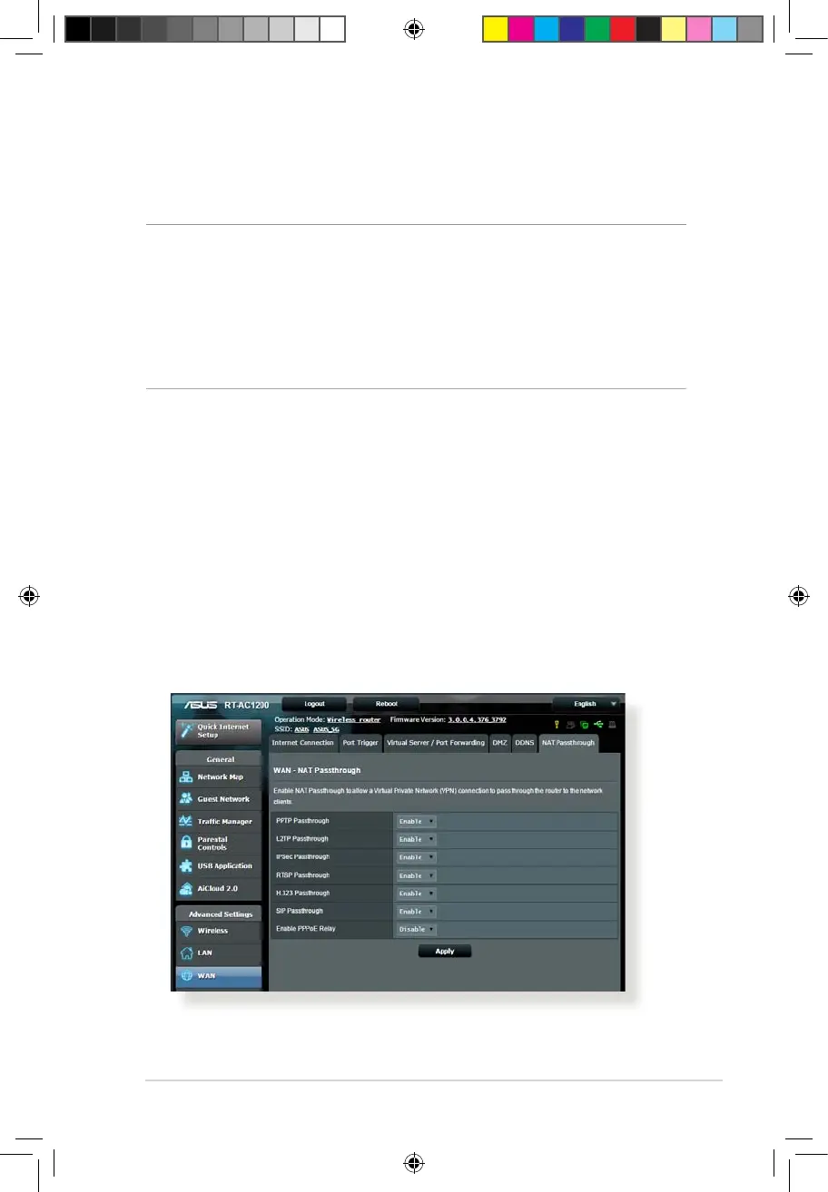 Advanced Settings > WAN > NAT Passthrough tab. When done,