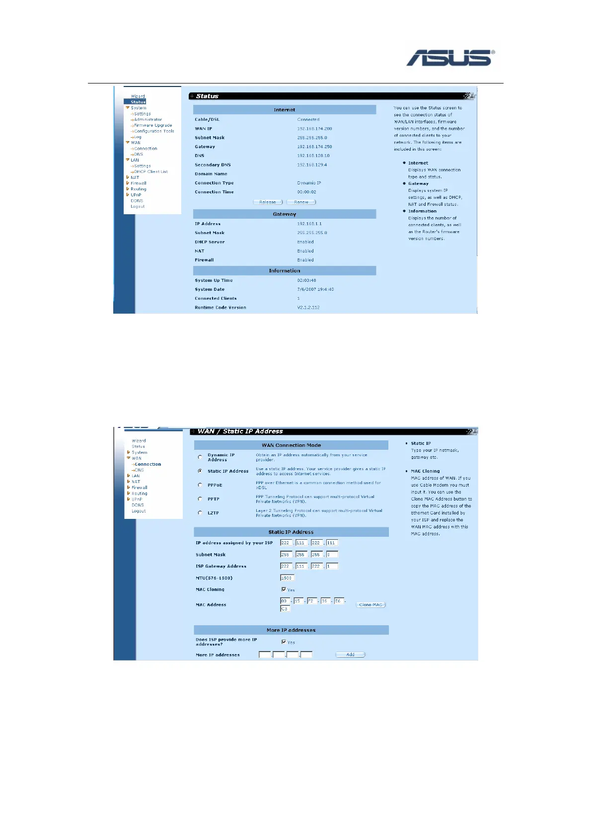 b) Configure Static IP Address Î Input IP Address, Subnet Mask, ISP Gateway provided