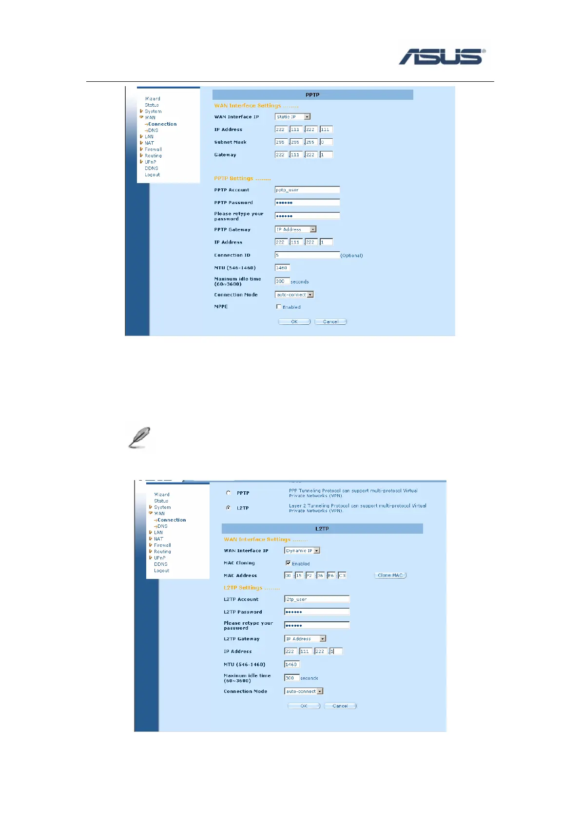Tip: The setting steps of L2TP are similar as PPTP, please click