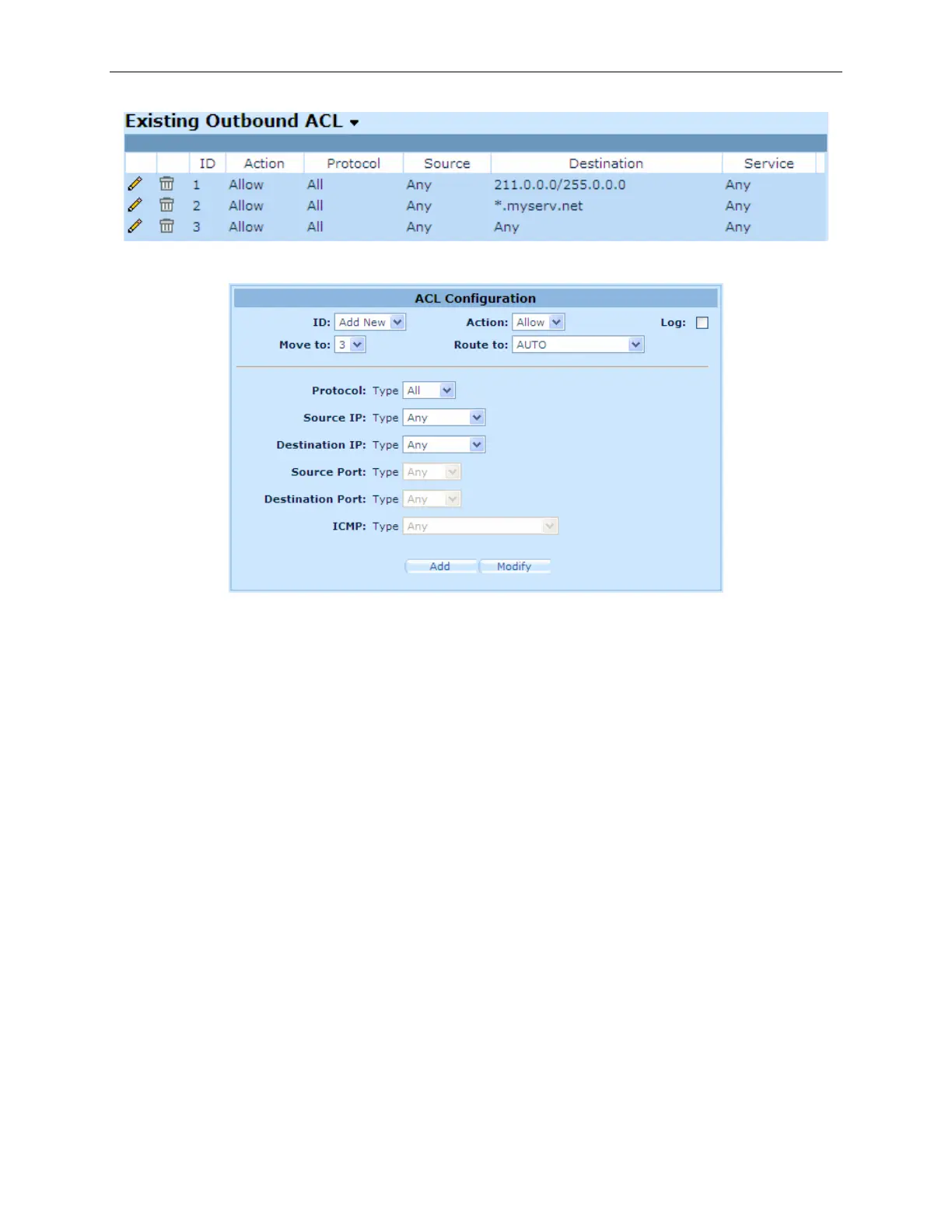 Figure 5.9. WAN – Outbound ACL Rule Settings for PPPoE Multi-session Example