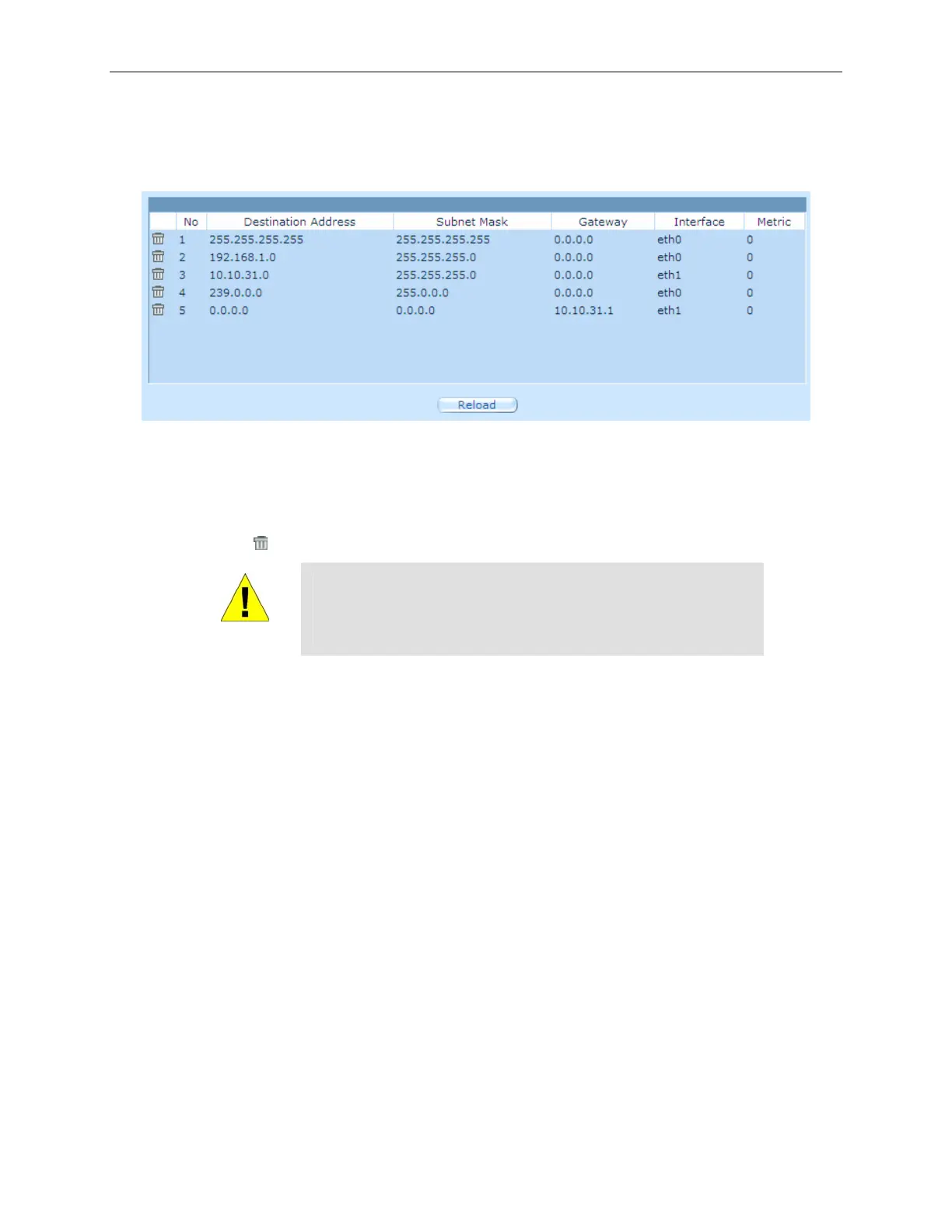 icon of the route to be deleted in the Routing Table.