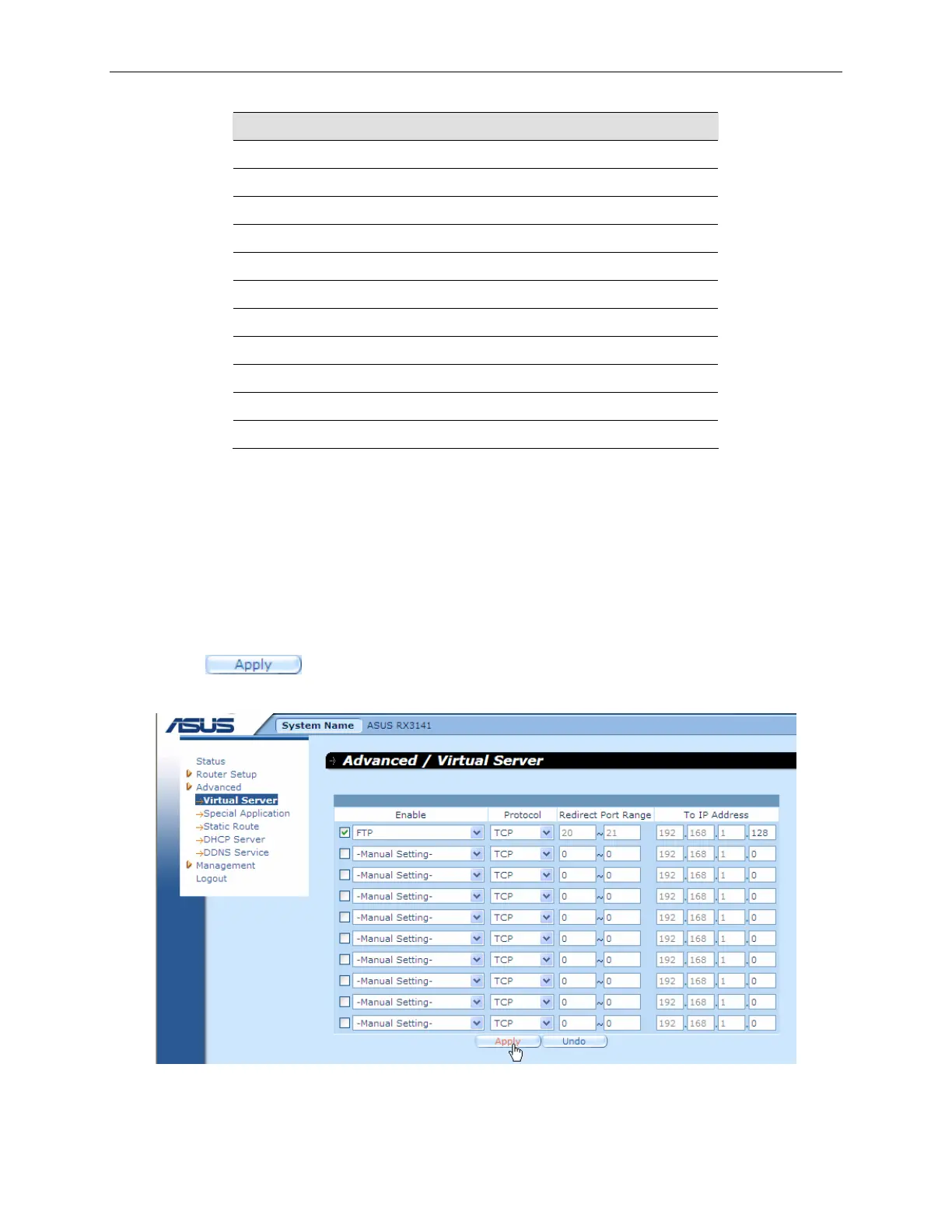 Advanced Î Virtual Server menu.