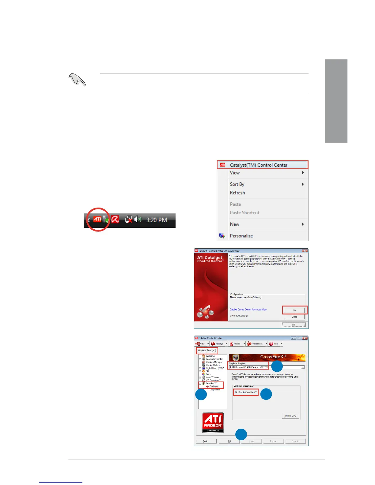 After installing your graphics cards and the device drivers, enable the CrossFireX™ feature