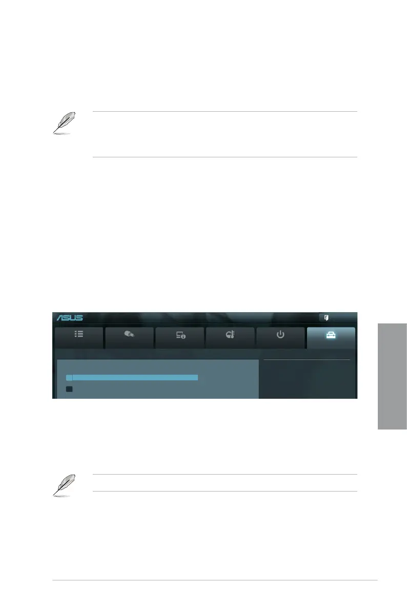 Allows you to run ASUS EZ Flash 2. When you press <Enter>, a conrmation message