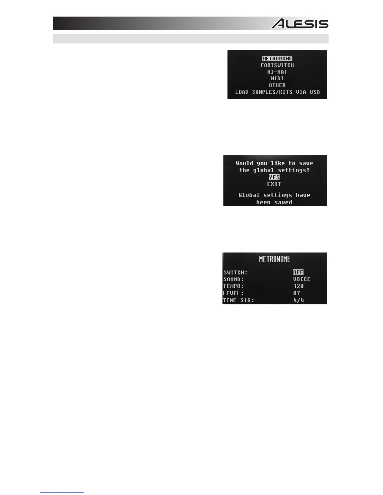 • Level (Nivel): Ajusta el volumen del metrónomo entre 0-10.