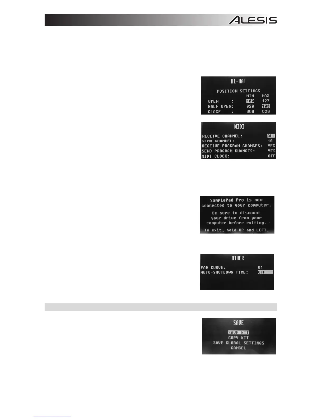 4. Drücken Sie Cursor Rechts, um in das Untermenü SAVE KIT zu