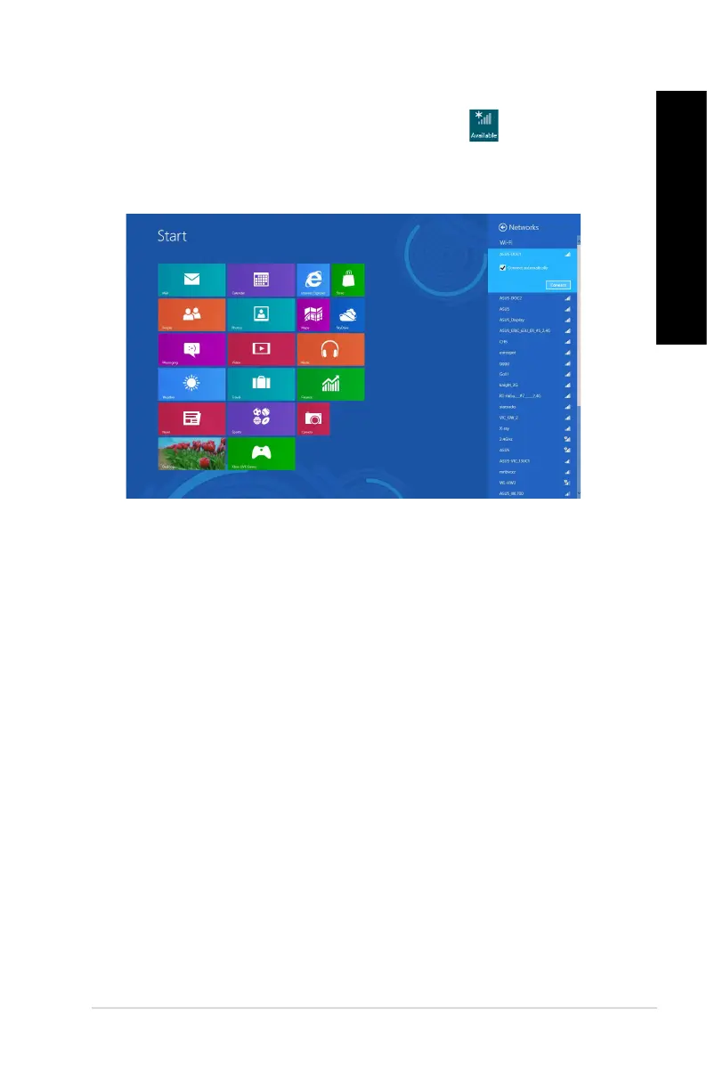 2. From the Charms bar, select Settings and click the network icon .