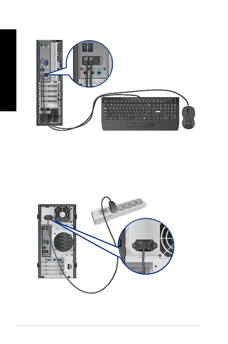 To connect the power adapter and power cord to the desktop: