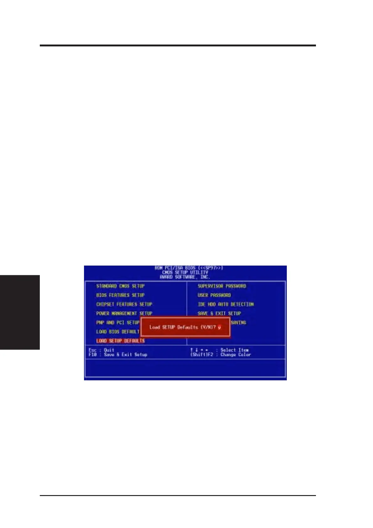tings for the system. To load these default values, highlight “Load Setup Defaults”