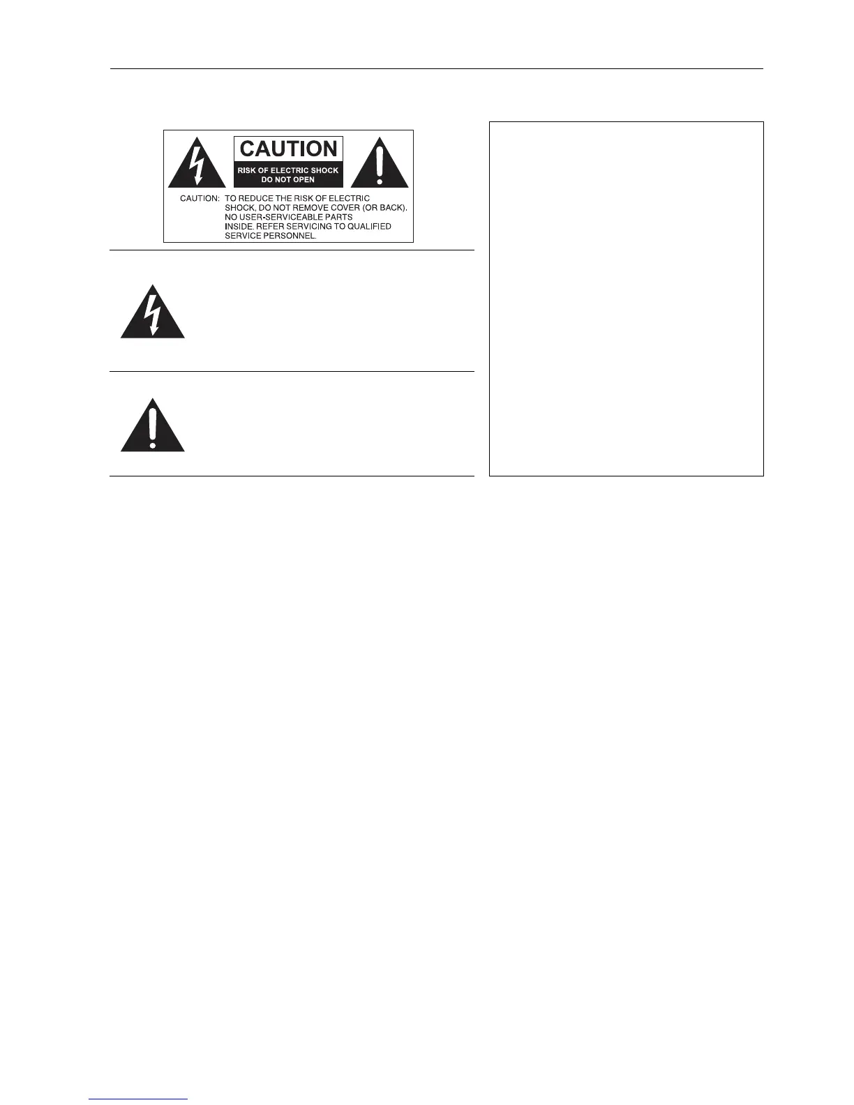 • To reduce the risk of electric shock, do not remove covers. No user serviceable parts