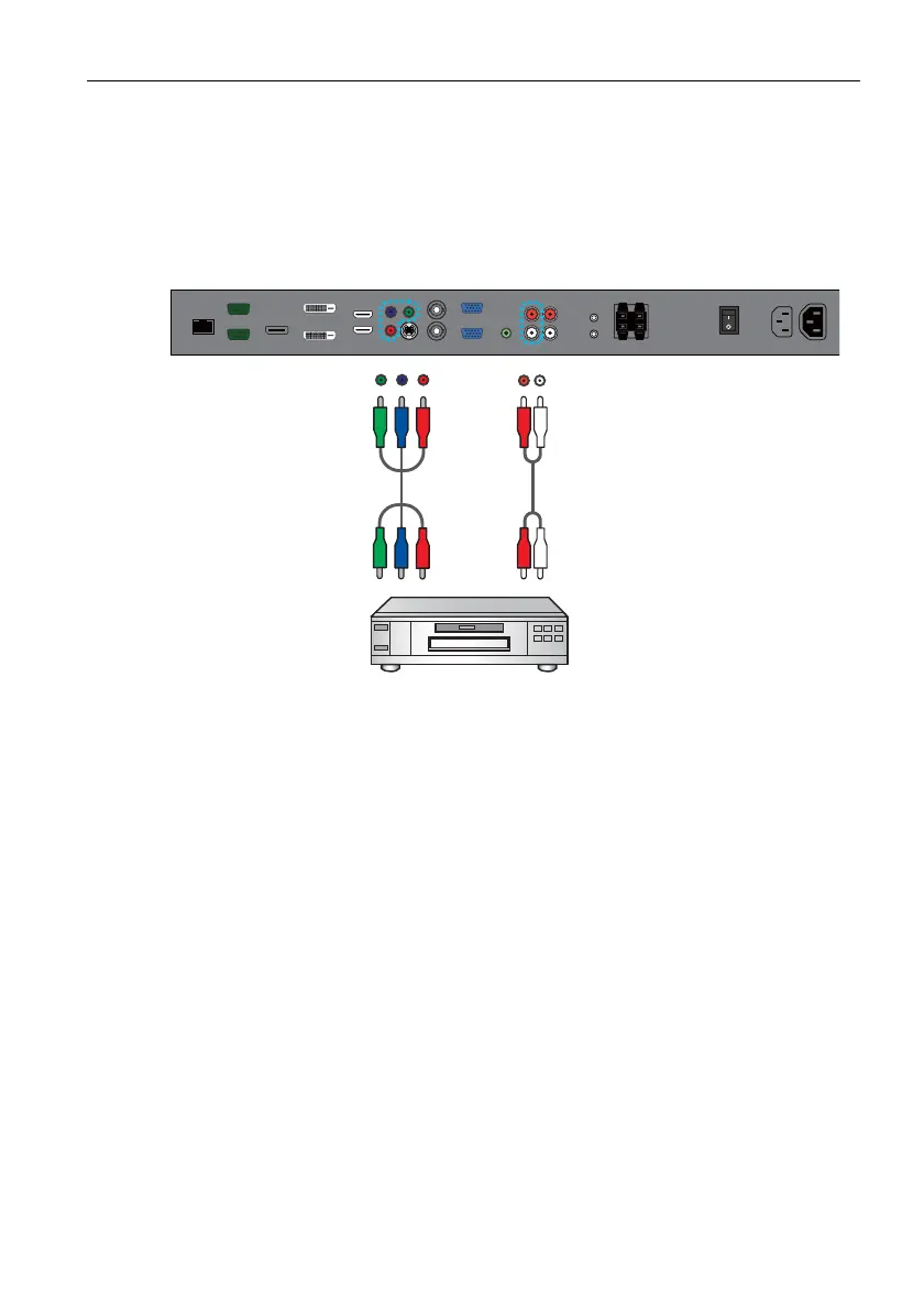 1. Connect the VIDEO IN (YPbPr) jacks on the display to the component output jacks on