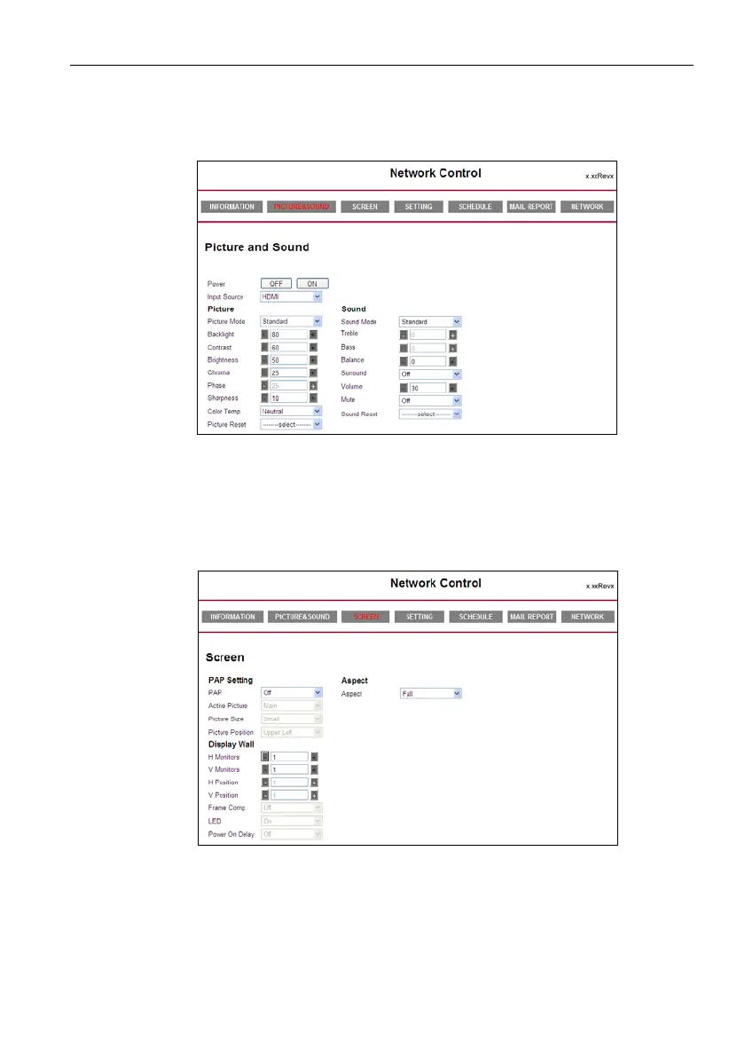 The Picture & Sound page provides options for picture and sound adjustments. For more