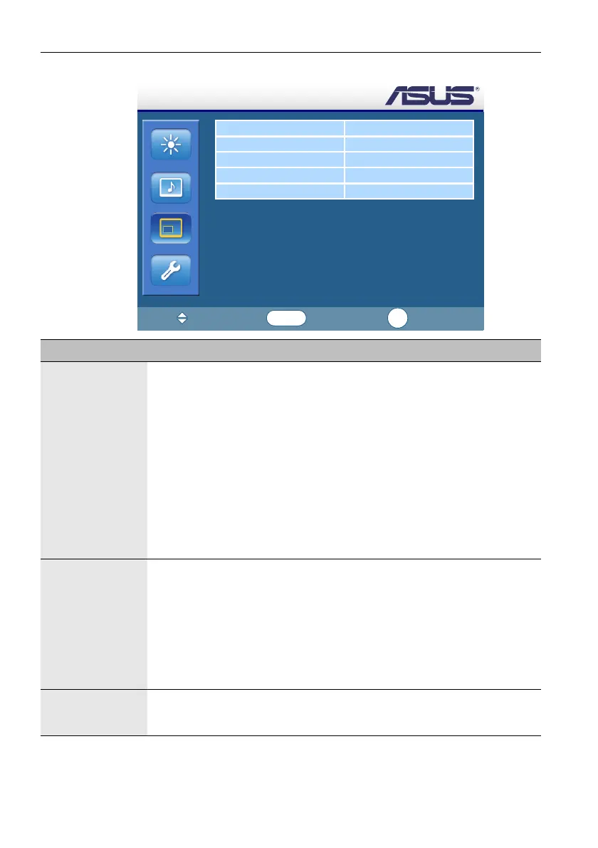 • H. Position/V. Position: Sets the horizontal/vertical position of the display