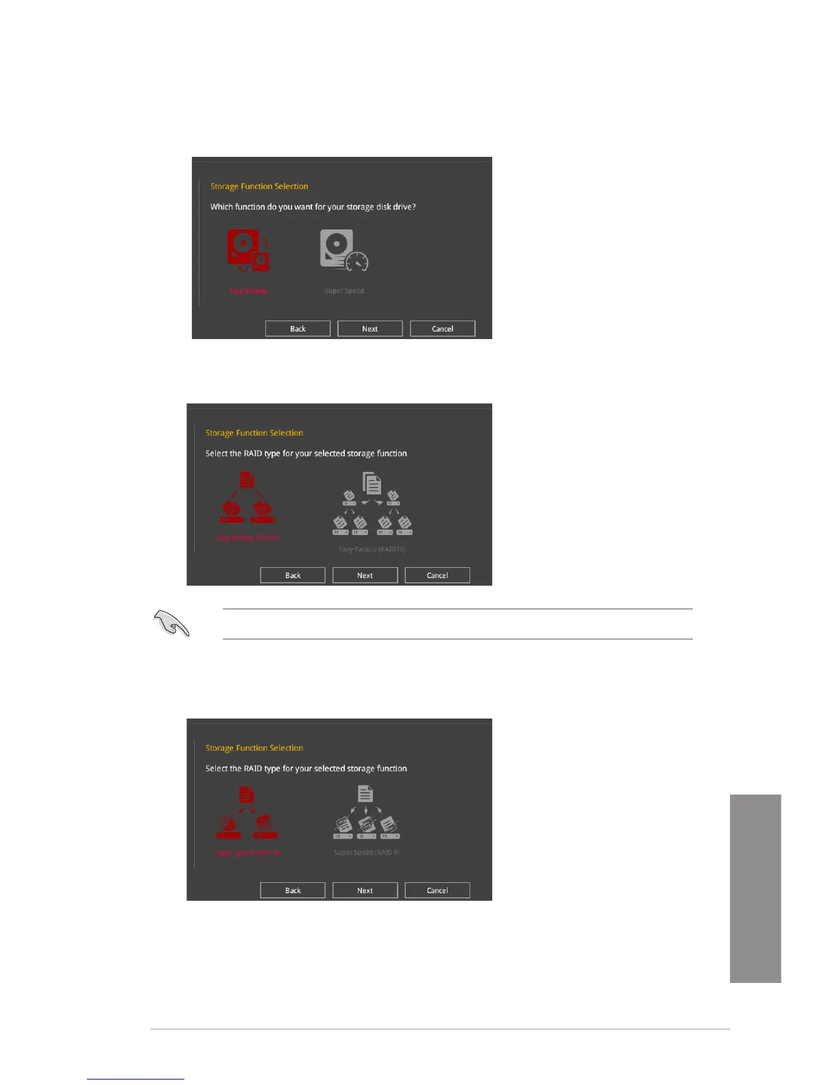 4. Select the type of storage for your RAID, Easy Backup or Super Speed, then click