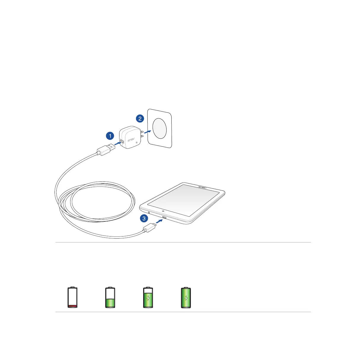 • ChargeyourASUSTabletforeight(8)hoursbeforeusingitinbatterymodeforthersttime.