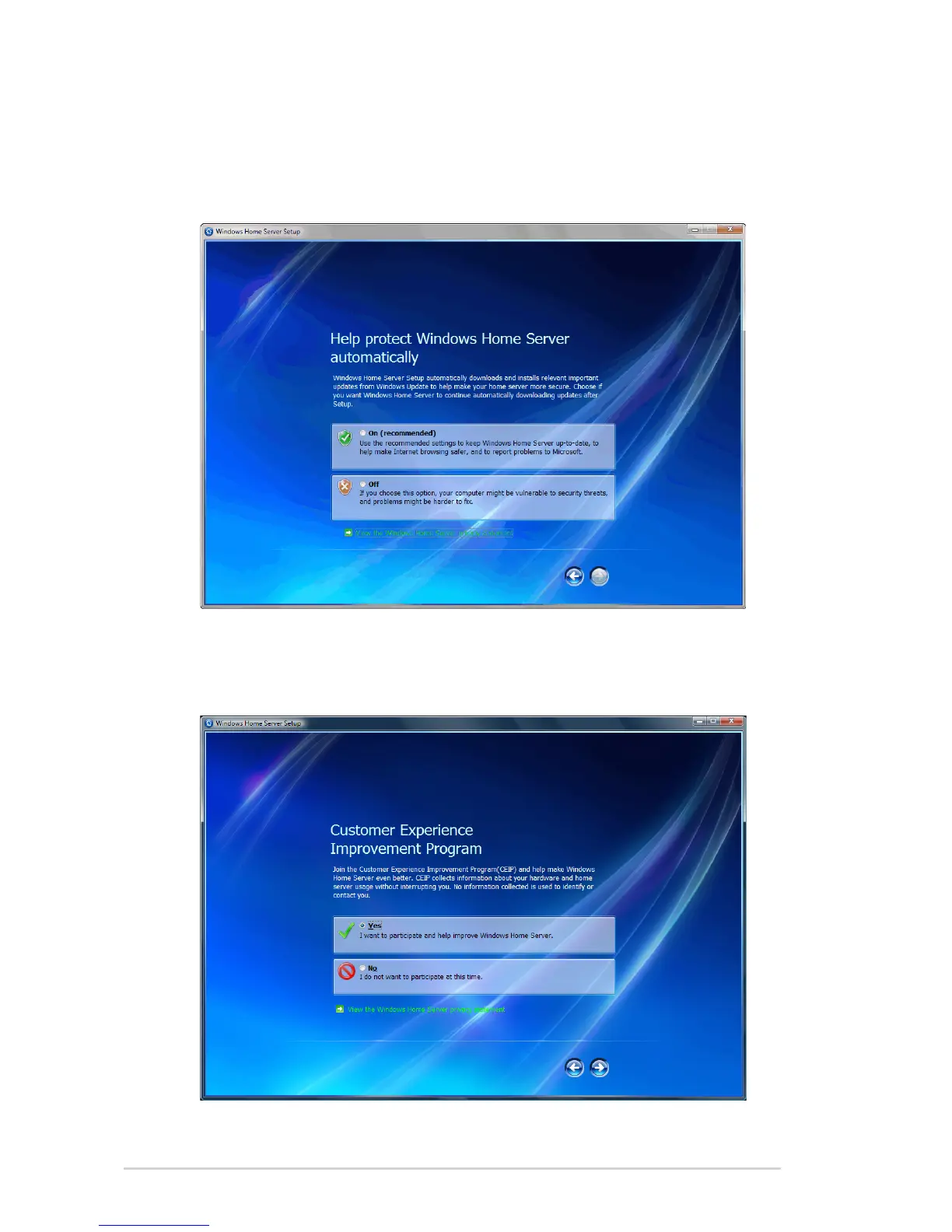 14. Choose if you want Windows Home Server to continue