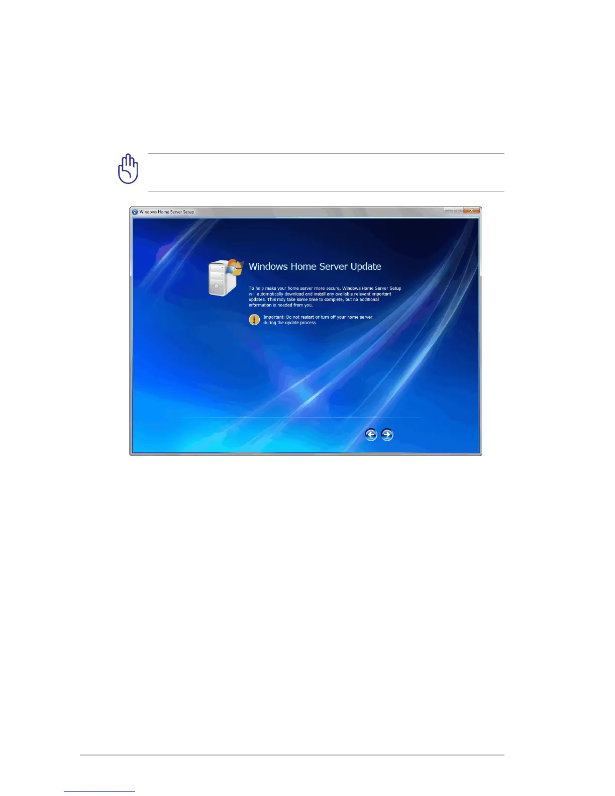 Do not restart or turn off your home server during the update
