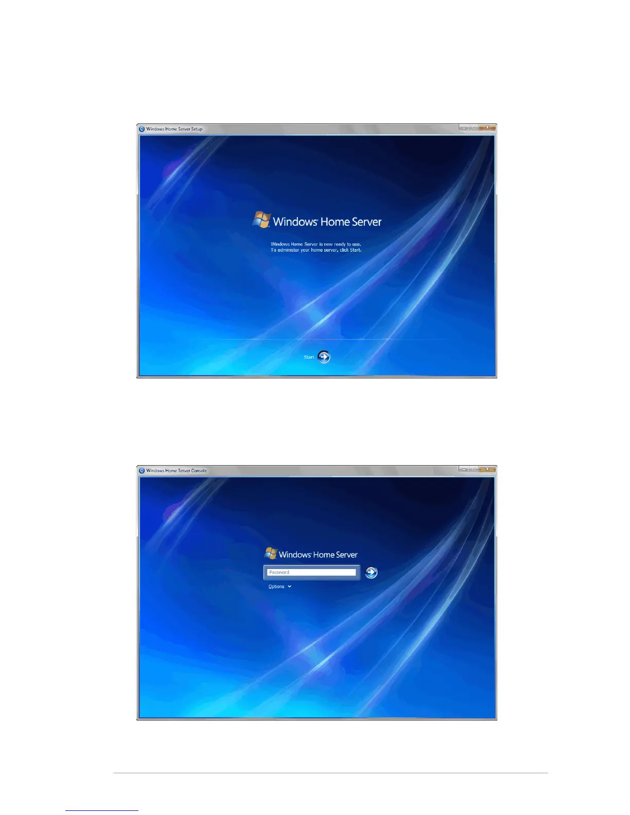 to start using the Windows Home Server Console.
