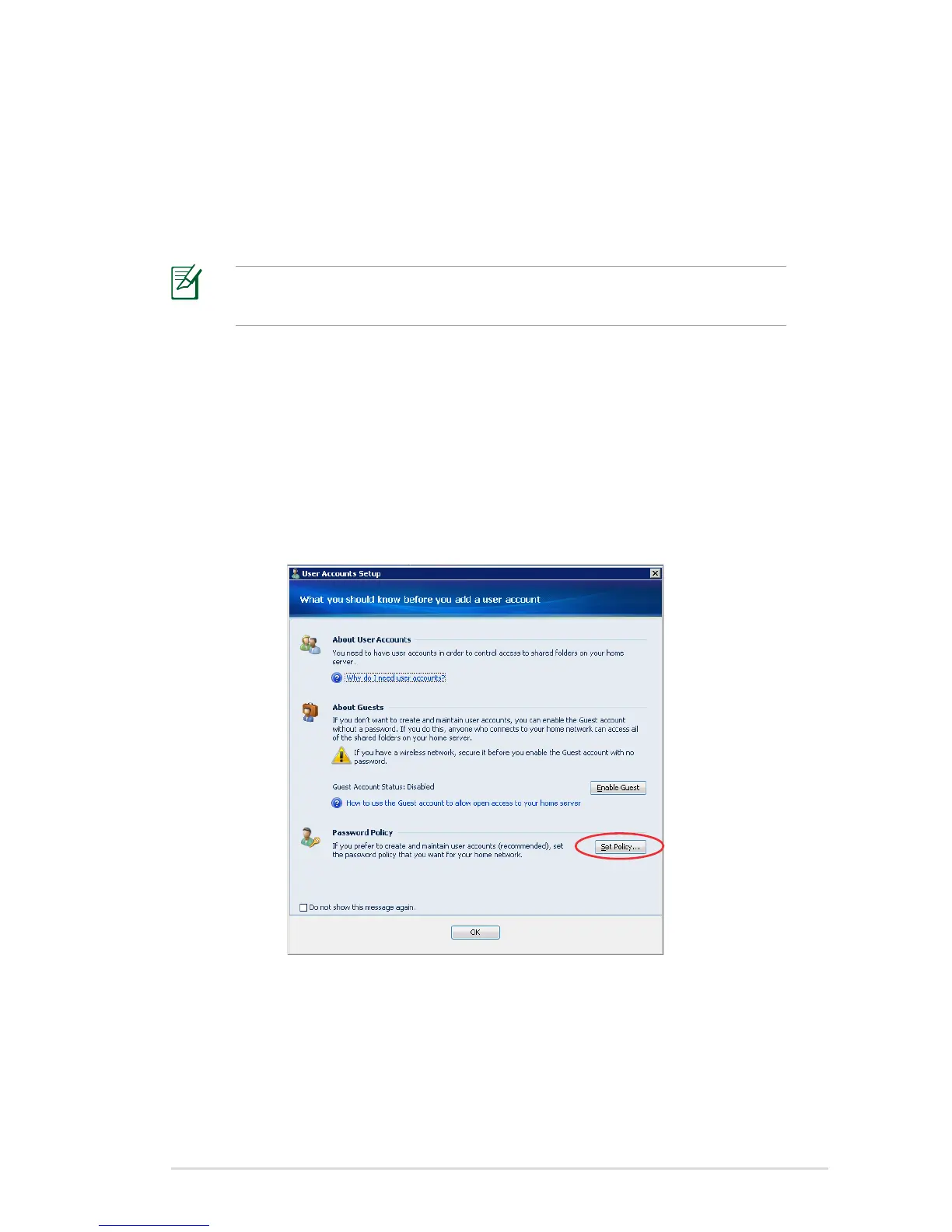 3. On the User Accounts Setup window, click Set Policy to bring up