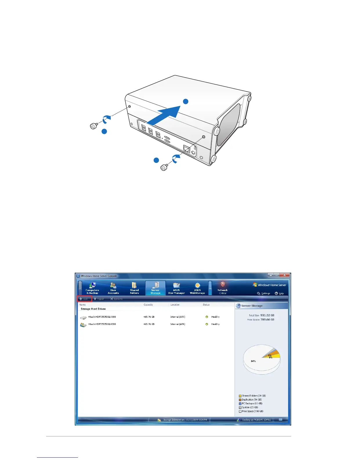 2. Add the new hard drive to Server Storage on the Windows