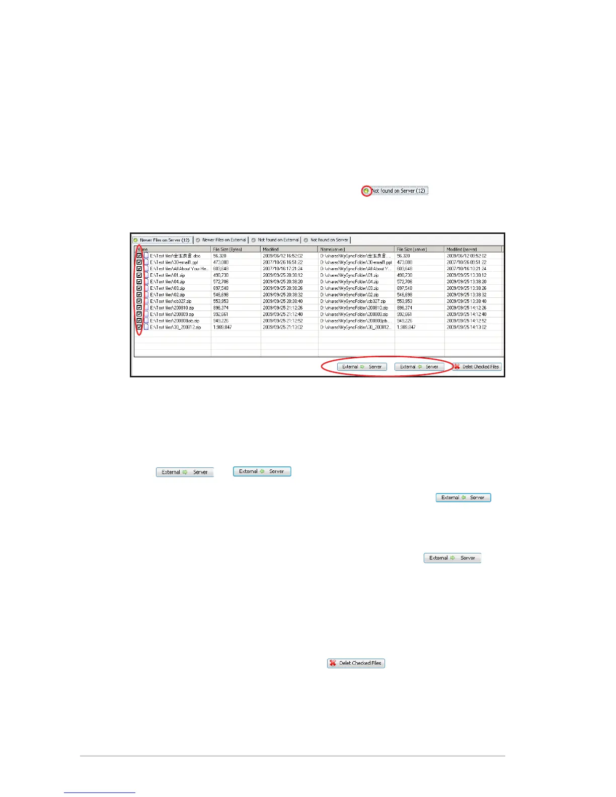 • Not found on Server – the files only exist on the external