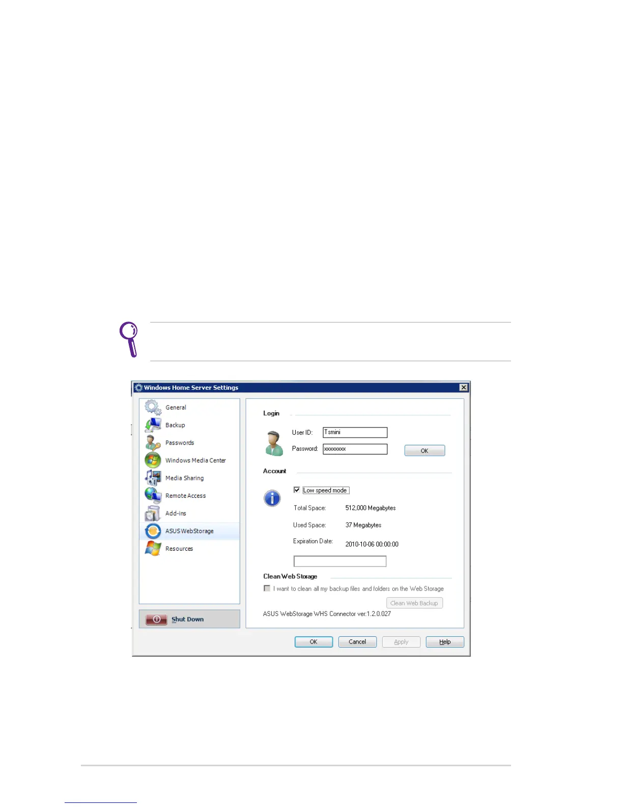 Configuring the ASUS WebStorage settings