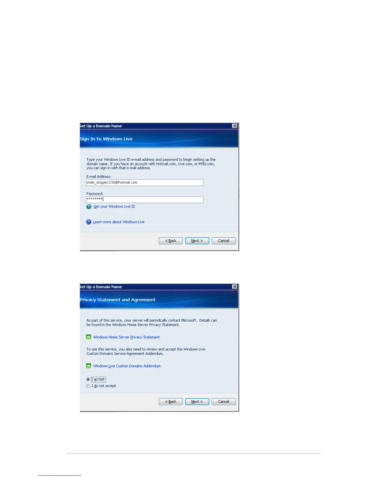 8. Enter your Windows Live ID email address and password to