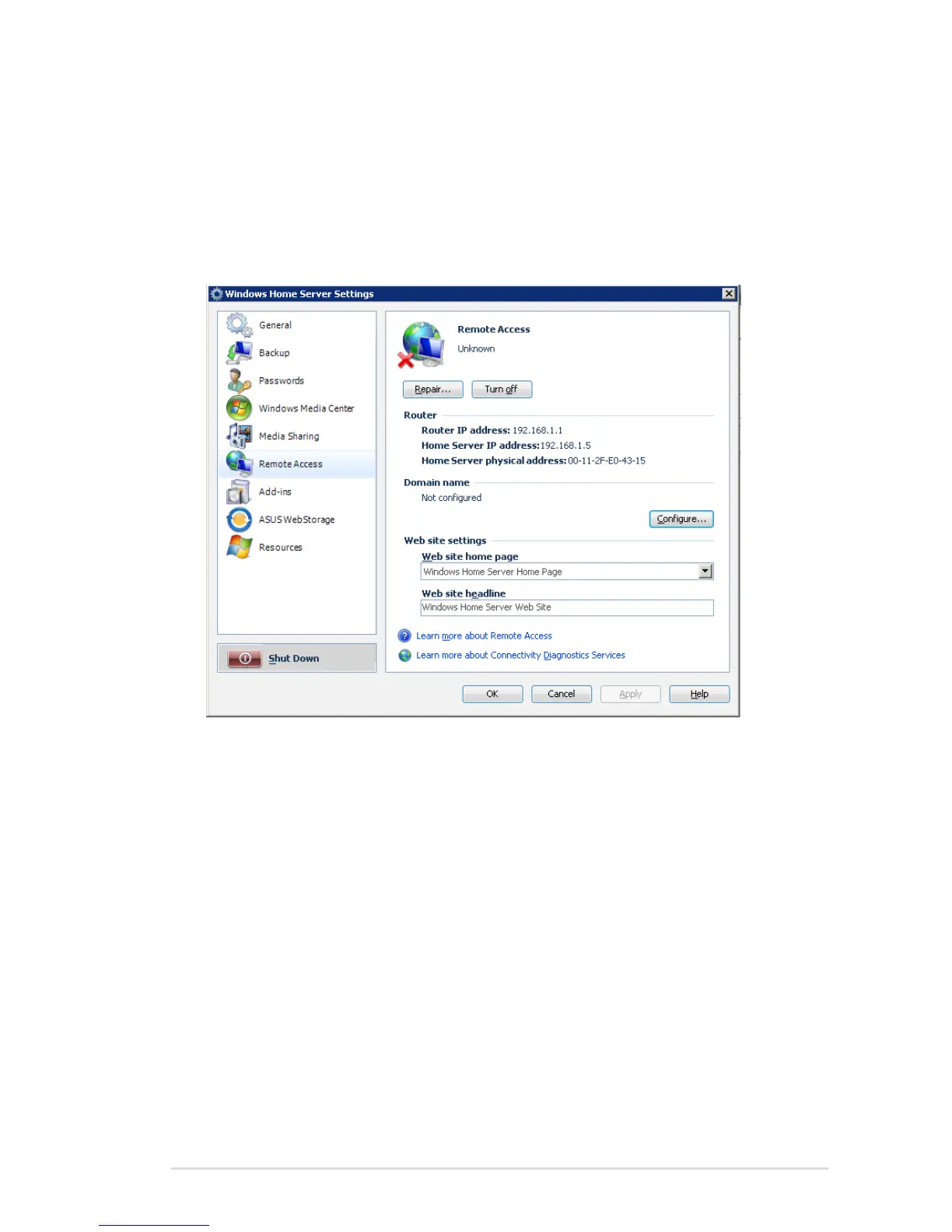 home server Web site.