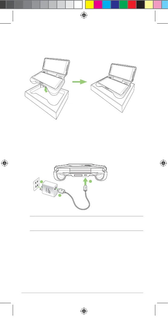 W celu naładowania stacji dokującej przy użyciu zasilacza telefonu ROG: