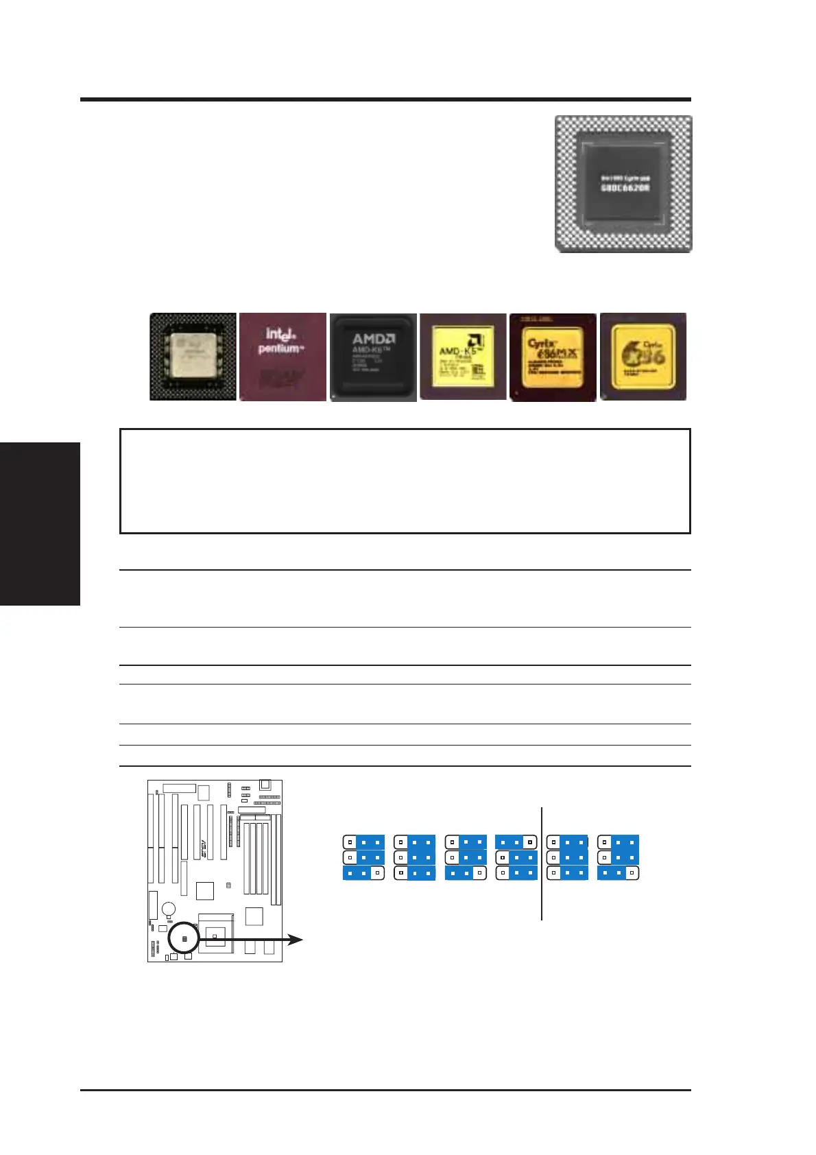 AMD (.35micron) K6-166,200 ---- 2.9V(Dual) [2-3] [2-3] [1-2]