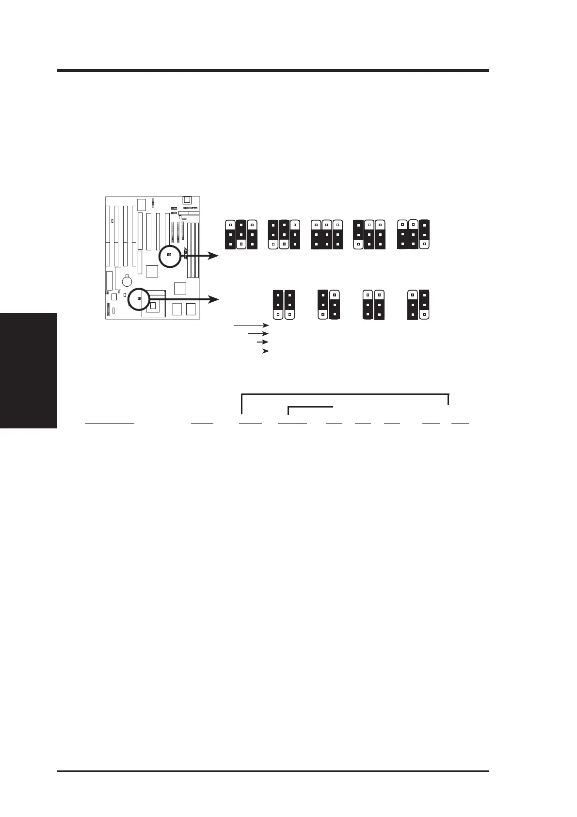 These jumpers set the frequency ratio between the Internal frequency of the CPU