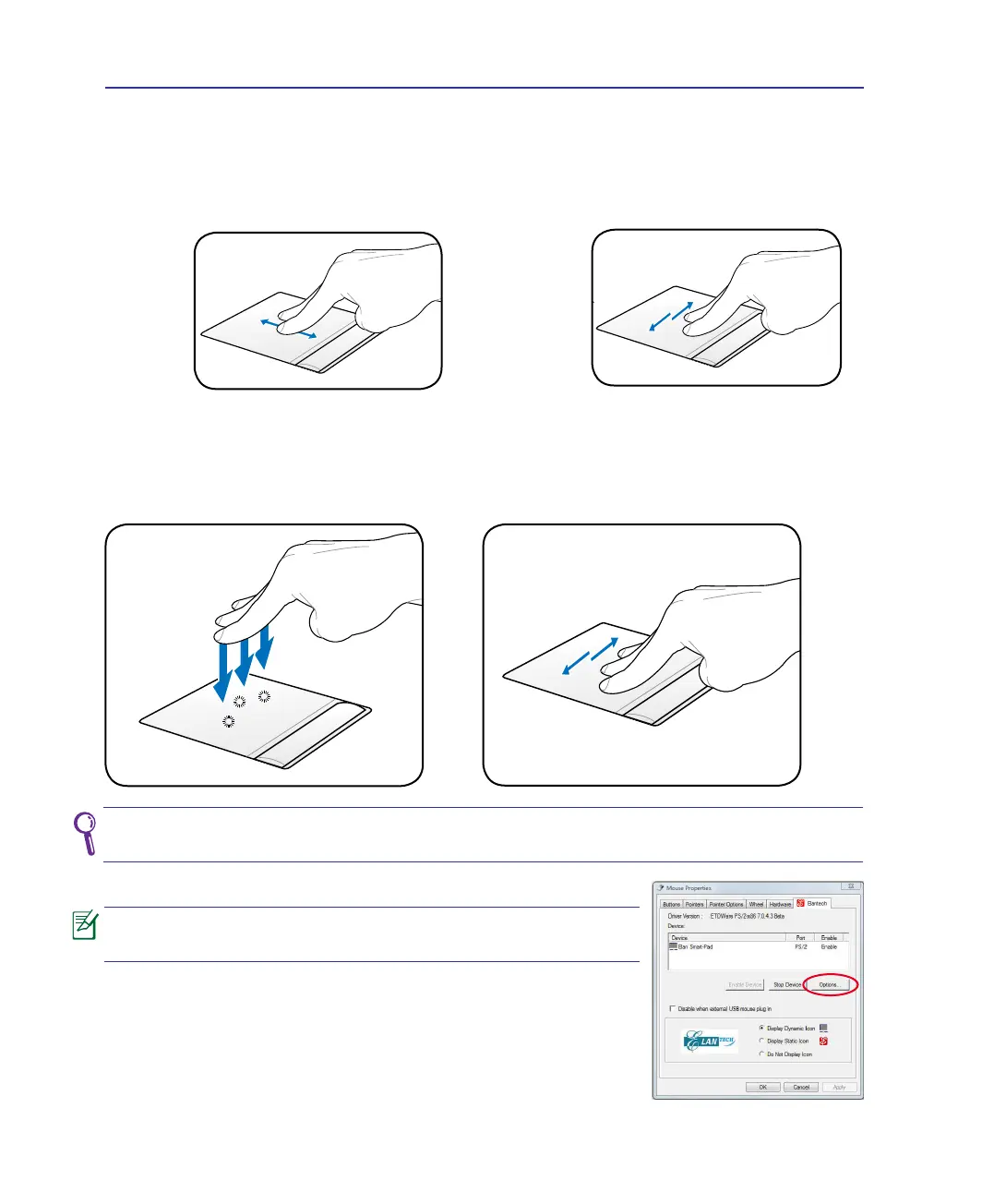 Two-nger scrolling - Use two ngertips to slide up/down/left/right on the touchpad to scroll a