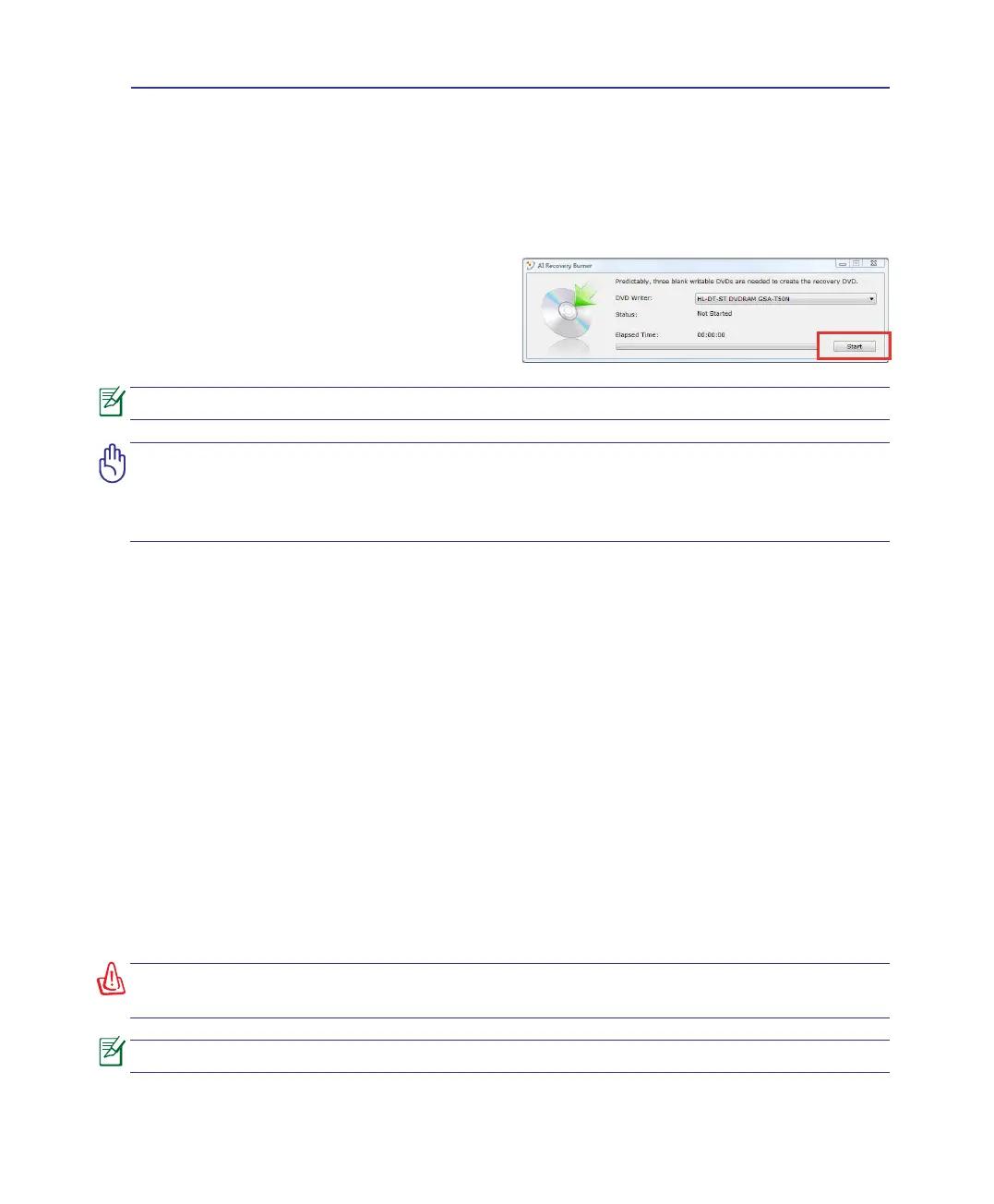 Prepare three blank writable DVDs to create the Recovery DVD.