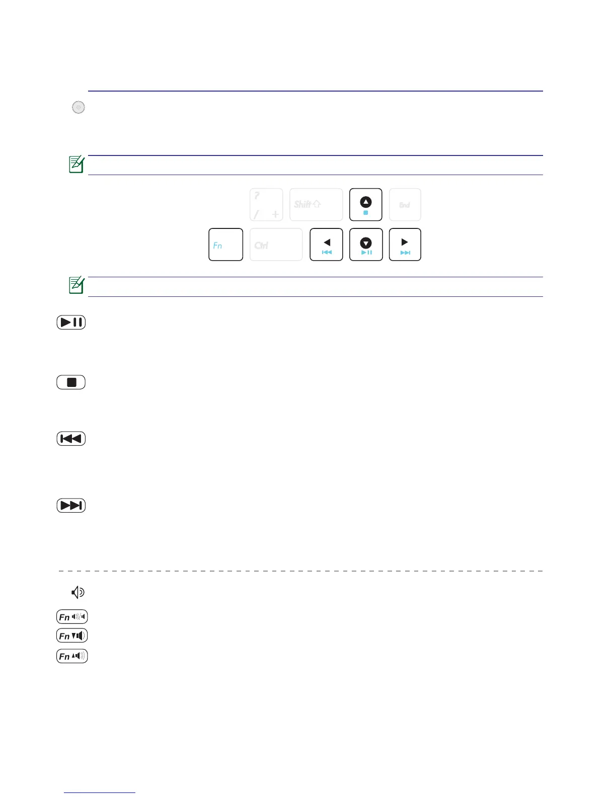 lowing denes the meaning of each multimedia control key on the Notebook PC.