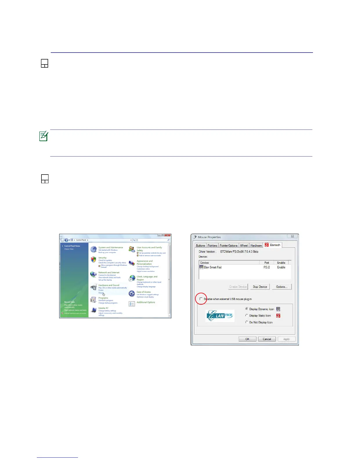Windows can automatically disable the Notebook PC’s touchpad when an external USB mouse is