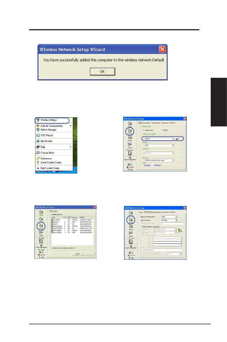 Use the ASUS WLAN utility to get connected with an existing wireless network.