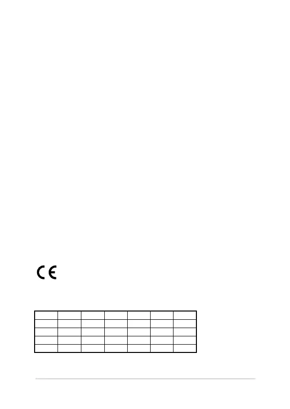 indoor use for countries listed in the table below: