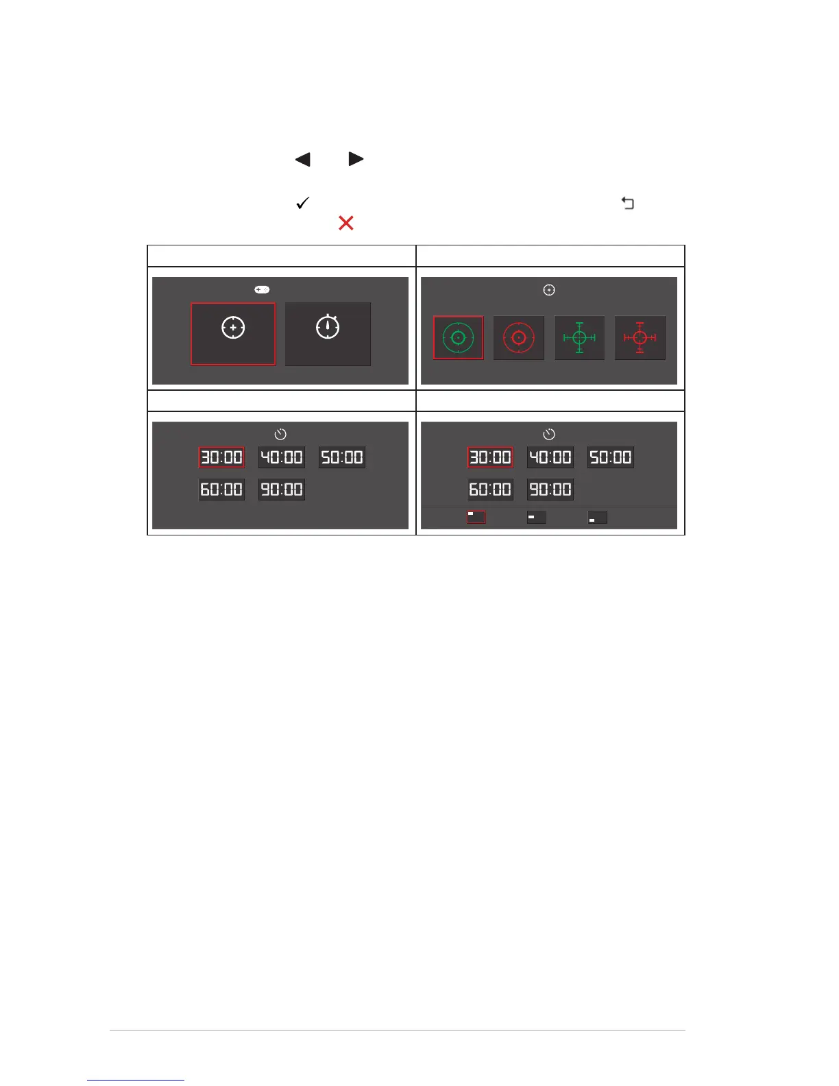 and to select between Crosshair and Timer