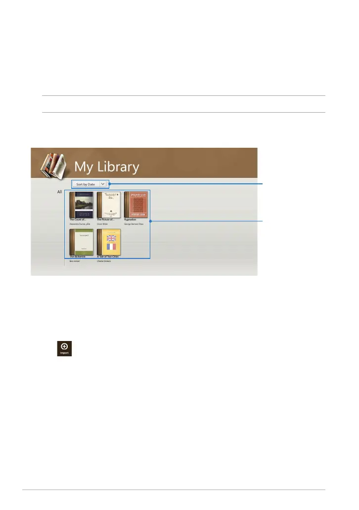 and sort your purchased or downloaded e-books by title, author, and date.
