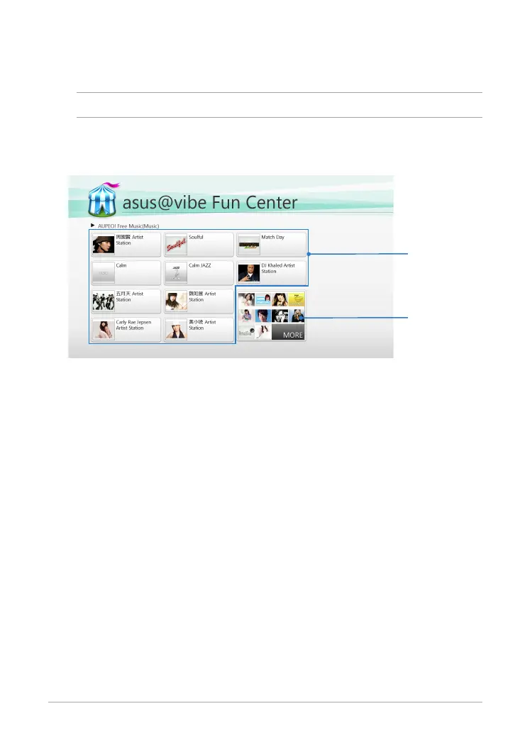 ASUS @vibe allows you to stream music and radio contents provided by Internet