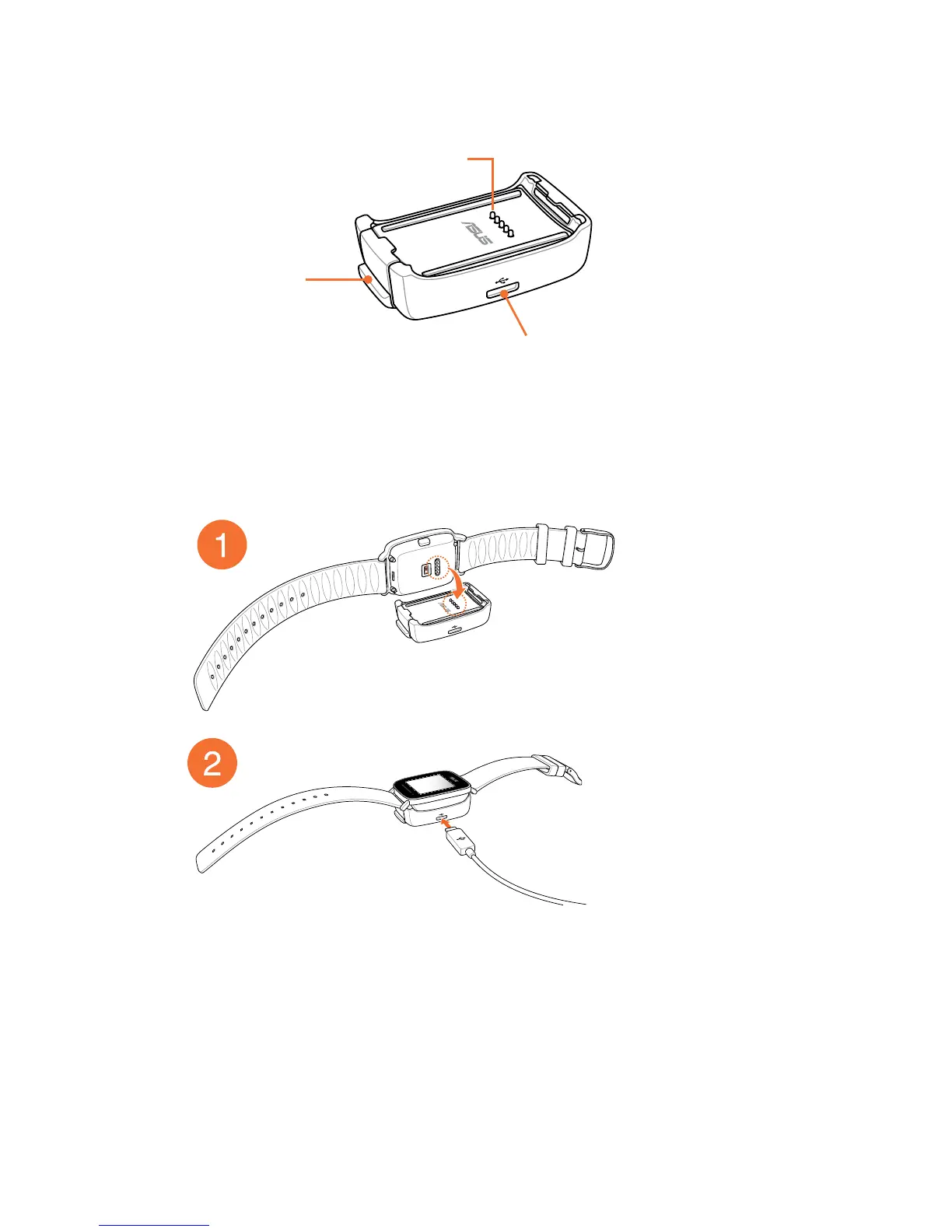 Asus VivoWatch - Charging and Powering Your ASUS VivoWatch; Charging Cradle and Connection Points; Step-by-Step Charging and Power-On Guide