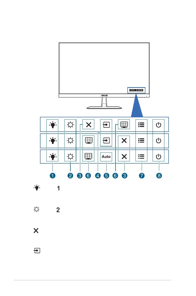 • Exits the OSD menu or goes back to the previous menu when the OSD