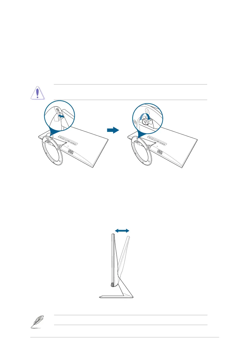 • Hold the stand to prevent the monitor from falling when you change its angle.